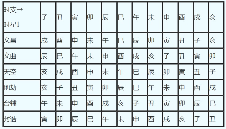 | 天姚 | 丑 | 寅 | 卯 | 辰 | 巳 | 午 | 未 | 申 | 酉 | 戍 | 亥 | 子 |