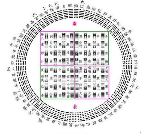 64卦方圆图就是64卦方图和圆图的综合图,圆图象征天,代表时间;方图象征地,代表人事。