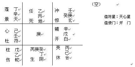 1、有贵人相助;2、有学习的机会;3、但杜门有堵塞不通之意,不利东方,有杜门又为炎症,伤骨等当有腰痛之疾;4、求财大利北方,北方有朋友相邀,生门为财利,相生本人年命为进财,故财在北方;5、不利西方,西方有白虎克年命,农历8月有血光之灾;6、西南破财有口舌;7、东北方财和脚有伤。